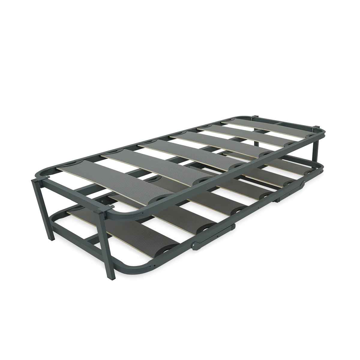 Son couvercle est renforcé par un tube métallique de 30 x 30 mm, son revêtement en tissu 3D de 215 g de densité et 10 mm d’épaisseur en fait le support idéal pour votre matelas.
